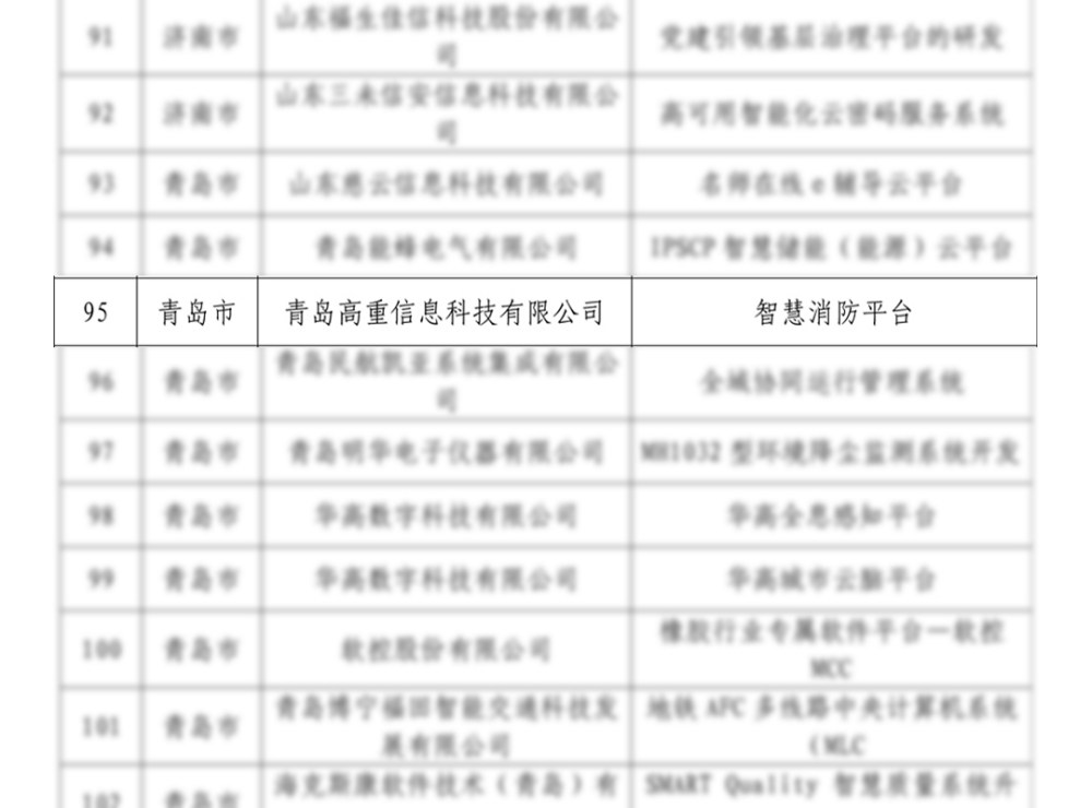 为贯彻落实《山东省人民政府办公厅关于加快推动软件产业高质量发展的实施意见》(鲁政办发〔2020〕1号),提升高端软件供给能力,提高创新链整体效能,赋能传统产业转型升级,催生新产业新业态新模式,经企业申报、地市审核推荐、专家组评审等程序,山东省工业和信息化厅近日公布了第三批山东省软件产业高质量发展重点项目名单,青岛高重信息科技有限公司自主研发的“智慧消防平台”成功入选。