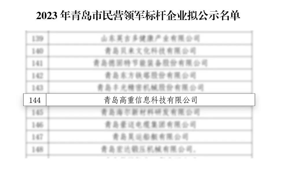 喜报 | 高重科技入选2023年度青岛市民营领军标杆企业!