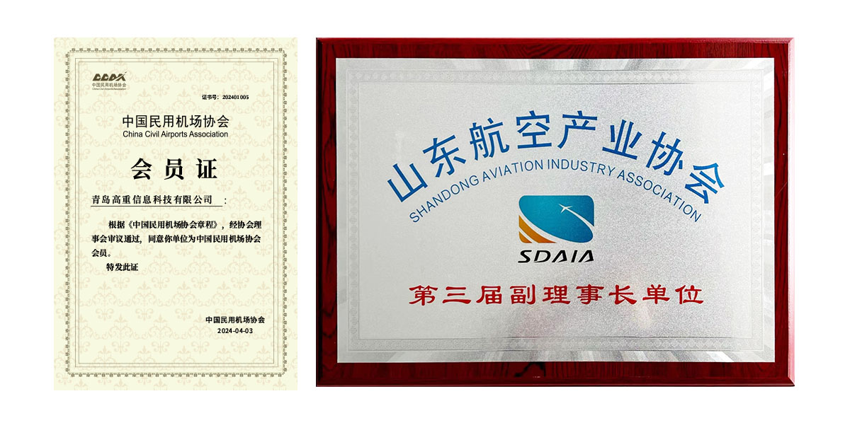 近期,高重科技正式成为中国民用机场协会会员单位、山东航空产业协会副理事长单位。