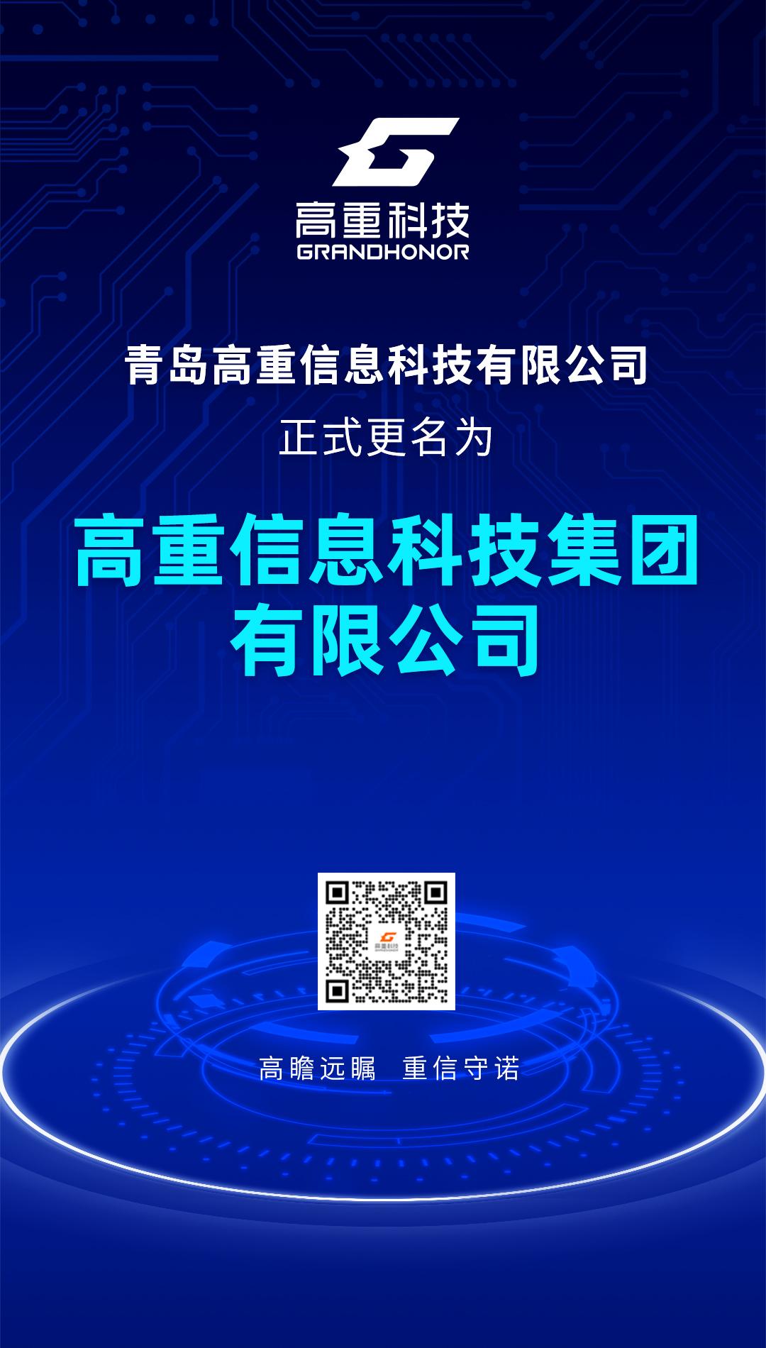 公司名称变更后,业务主体和法律关系不变,原“青岛高重信息科技有限公司”发布的各类文件、签订的合同协议、往来函件等法律文书继续有效,原有的业务关系和服务承诺保持不变。对于因公司名称变更可能给各位带来的不便,我们深表歉意,衷心感谢您一直以来的信任和支持!