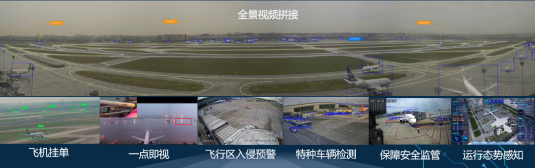 高重科技“数字站坪管理平台”通过自研的视频分析及AI算法训练,自动进行机位适用性识别,自动监测违规事件并实时预警;实现全天候、全方位、全覆盖、全过程的大场景实时监视的运行安全态势感知管理,并通过视频联动,进行事件核实和过程追溯,实现全景运行监控滑跑运行感知、航空器起降跟踪、跑道侵入预警、远程塔台等功能,对飞行区进行全面数字化监控,助力机场运行效率与安全性的提升。0